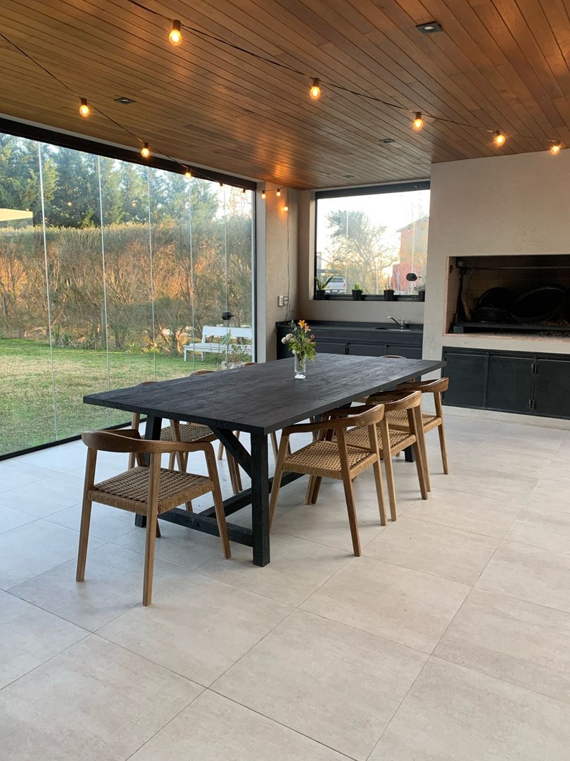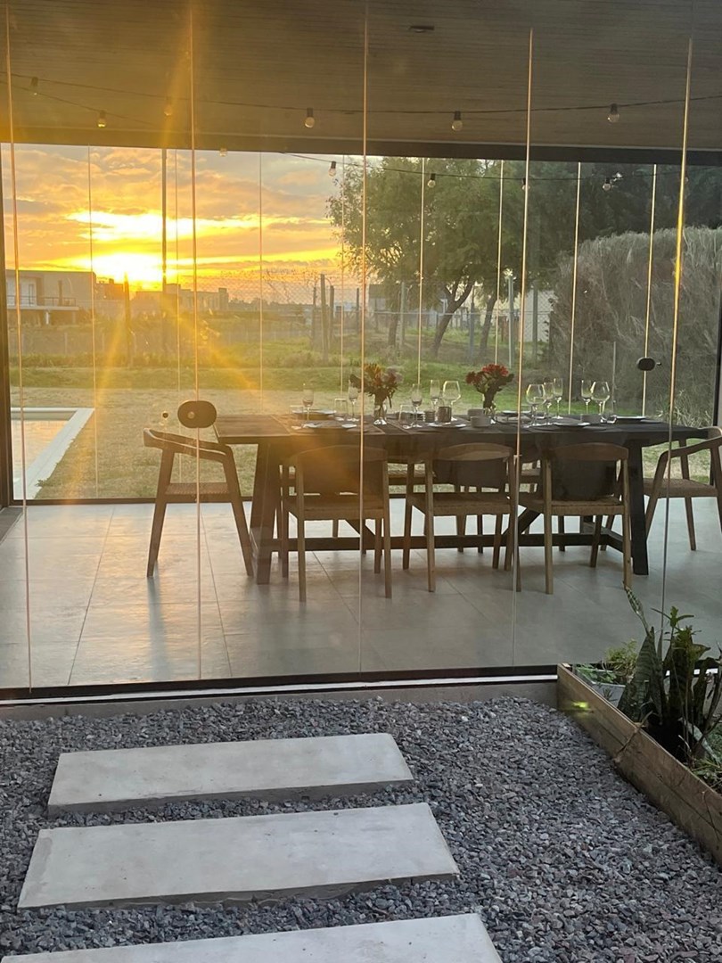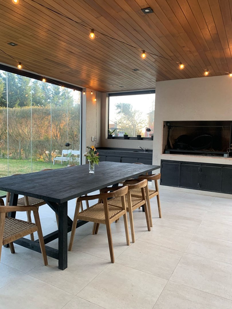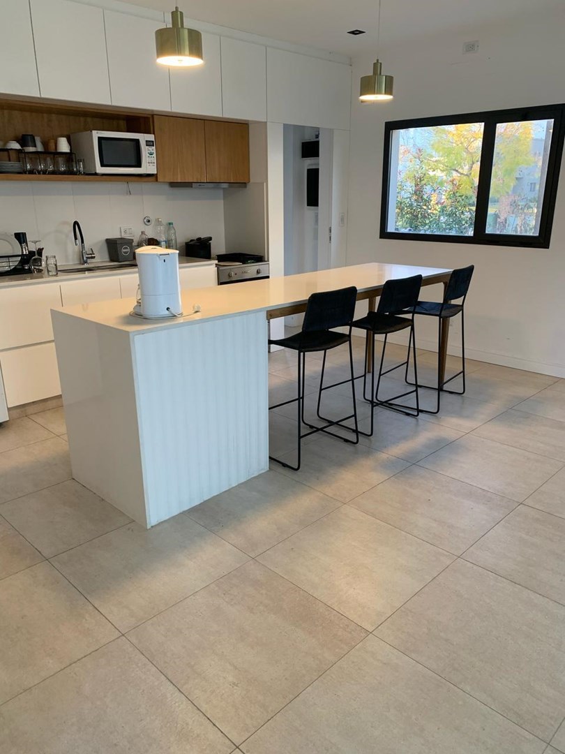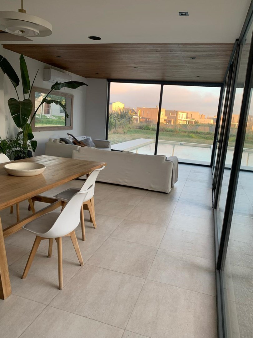 Alquiler temporario de casa con piscina y jardín Última semana de diciembre hasta 31 de enero u$s 6500 Enero u$s 5500 Febrero u$s 5200 Planta Alta Habitaciones: 3 dormitorios Principal: Cama 2x2 m, vestidor con espejo, baño completo con doble lavabo, jacuzzi, ducha y salida a balcón terraza Secundarios: 2 habitaciones gemelas con camas de 1 plaza (3), una con Smart TV Baños: 1 baño completo para las habitaciones secundarias con división entre lavabos y ducha con bañadera, bidet, y otro baño en suite en la habitación principal Espacios adicionales: Área de distribución con televisor y sillón de 3 cuerpos (playroom) Planta Baja: Cocina integrada: Horno y cocina eléctrica, lavavajillas, heladera, microondas, zona de lavado con lavarropas y muebles de guardado Comedor: Mesa principal para 10 personas Living: Con sillones y ventanales al jardín y galería Galería: Mesa para 10, parrilla completa con brasero y zona de lavado, acceso independiente Pileta: Con filtrado automático Jardín: Gestionado por equipo durante todo el año, mantenimiento semanal Servicios incluidos: Jardinero, seguridad, tasas municipales, ARBA, residuos, agua potable, Netflix, WiFi, electrodomésticos, vajilla, productos para pileta No incluido: Expensas mensuales, limpieza, energía eléctrica, gas