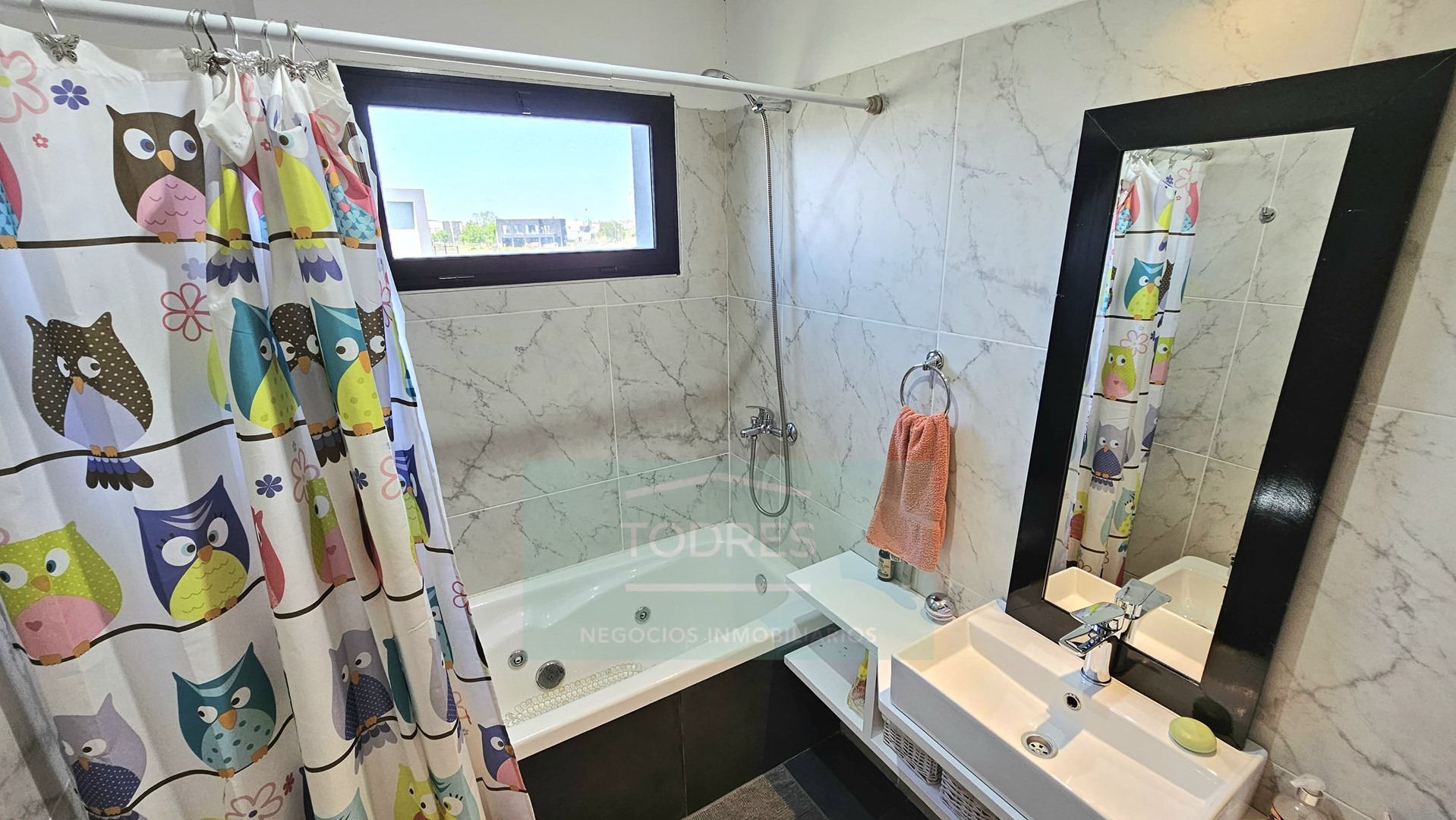 Casa en alquiler en Acacias, Puertos del Lago, Escobar, con piscina que combina una ubicación excepcional con características constructivas de alta calidad. Esta casa se encuentra en un terreno de 750m2 y ha sido construida con atención meticulosa a los detalles. Permíteme proporcionarte una descripción detallada de esta impresionante propiedad. Ubicación y Terreno: Este hogar se ubica en un terreno de 750m2 en Puertos del Lago, con un entoscado que eleva la casa 50cm sobre el nivel inicial del lote. Ofrece visuales directas al lago principal de Puertos del Lago desde el contrafrente, y visuales indirectas al lago del Barrio Acacias desde el frente. Superficie y Distribución: La casa cuenta con un total de 243m2 distribuidos en dos plantas. En la planta baja, encontrarás 100m2 de espacio cubierto, que incluye un hall de entrada, un amplio living-comedor, un toilette, una cocina moderna, un lavadero y un versátil escritorio/dormitorio de servicio con su propio baño. La planta alta ofrece 80m2 de espacio cubierto, que consta de un hall y circulación vertical, un espacioso escritorio, un dormitorio principal en suite con vestidor y expansión, dos dormitorios adicionales, y un baño completo. Características Constructivas: La casa ha sido construida sobre una sólida platea de hormigón de 18cm de espesor y 160m2. El sistema constructivo utilizado es de paneles de poliestireno proyectados con hormigón, lo que proporciona excelentes propiedades térmicas, acústicas y estructurales. Esta construcción se enmarca en un enfoque sustentable, siguiendo el estándar Concrehaus. Cuenta con preinstalación para aires acondicionados en todos los ambientes, lo que garantiza un confort óptimo durante todo el año. La calefacción se realiza mediante losa radiante con una caldera dual Peisa Diva Condensación, que representa la última generación en tecnología y eficiencia energética. Extras y Detalles: La casa incluye un tanque cisterna de 1000 litros con una bomba presurizadora de la marca Rowa, que asegura un suministro de agua confiable. Tanto el agua caliente como la calefacción se benefician de la instalación para calefón solar y la caldera dual Peisa Diva Condensación, garantizando eficiencia energética. Los revestimientos de porcelanato de primeras marcas en los pisos y los revestimientos cerámicos en baños y cocinas aportan un toque de elegancia a la propiedad. Los cerramientos de aluminio línea Rotonda 640 de Hydro, en color negro, cuentan con doble vidrio hermético (DVH) y vidrios de seguridad. Los cielorrasos suspendidos de placas de yeso Durlock proporcionan un acabado de alta calidad en toda la casa. La iluminación LED en todos los ambientes garantiza un ambiente acogedor y eficiente en términos energéticos. El espacio de entretenimiento al aire libre se destaca con una parrilla, pileta de lavar, agua fría y caliente en la galería, y una ducha exterior con agua fría y caliente. El revestimiento exterior es de tipo Tarquini, que combina estética y durabilidad. Se ha realizado la instalación de riego en el fondo del terreno para mantener los jardines en óptimas condiciones. Los baños están equipados con artefactos sanitarios de losa de primeras marcas y vanitorys. Para relajarse, los baños de la planta alta cuentan con hidromasajes de lujo. Esta propiedad es una oportunidad única para aquellos que buscan el equilibrio entre lujo, funcionalidad y calidad de vida. Si deseas obtener más información o programar una visita para explorar esta residencia de primera clase, no dudes en ponerte en contacto con nosotros. Estamos aquí para ayudarte a tomar la decisión inmobiliaria correcta. El Barrio Acacias cuenta con lago propio con salida navegable al Lago Central, Club House con pileta, plaza de juegos para los niños, canchas de tenis y básquet. Además, se encuentra estratégicamente ubicado próximo al club náutico y a la reserva natural. Puertos del Lago es un reconocido desarrollo inmobiliario que destaca por su entorno natural, amplias áreas verdes y hermosas lagunas, brindando un ambiente sereno y relajante para aquellos en busca de un lugar único para establecerse. Con un acceso directo desde la Panamericana y ubicado en medio de un entorno verde, esta ciudad ofrece un plan integral sólido y una propuesta urbanística que combina el valor artístico, paisajístico y ambiental de manera excepcional. En Puertos del Lago encontrarás la combinación perfecta entre tranquilidad y contacto directo con la naturaleza, sin renunciar a las comodidades de la ciudad. El lugar cuenta con un sistema integral de seguridad que proporciona tranquilidad a sus residentes. Además, ofrece programas de arte y cultura, educación de calidad, unidades de cuidados intensivos disponibles las 24 horas y una proveeduría ubicada en la Plaza Central con productos para las necesidades diarias. Explora la reserva ecológica, practica deportes acuáticos en la playa o participa en disciplinas como básquet, fútbol sobre césped, tenis, gimnasio y natación en el Club Deportivo. Puertos del Lago te brinda un estilo de vida equilibrado que combina el contacto con la naturaleza y las comodidades modernas. Contáctanos hoy mismo para obtener más información y dar el primer paso hacia la realización de tus sueños. ¡Puertos del Lago te espera con las puertas abiertas para que construyas tu futuro!